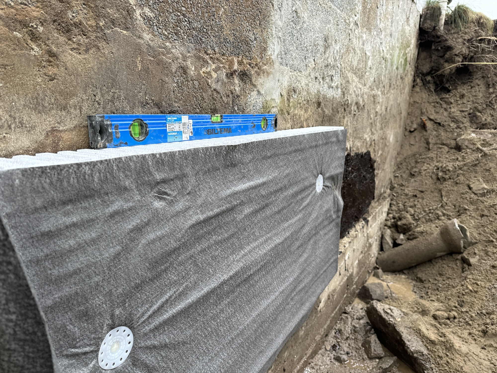 Utvendig isolering gir jevn temperatur i murveggen. SINTEF anbefaler å legge minst halvparten av isolasjonen på kjellermurens ytterside for å unngå fukt og dårlig inneklima. Thermodren® er utviklet for å tilfredsstille denne anbefalingen.