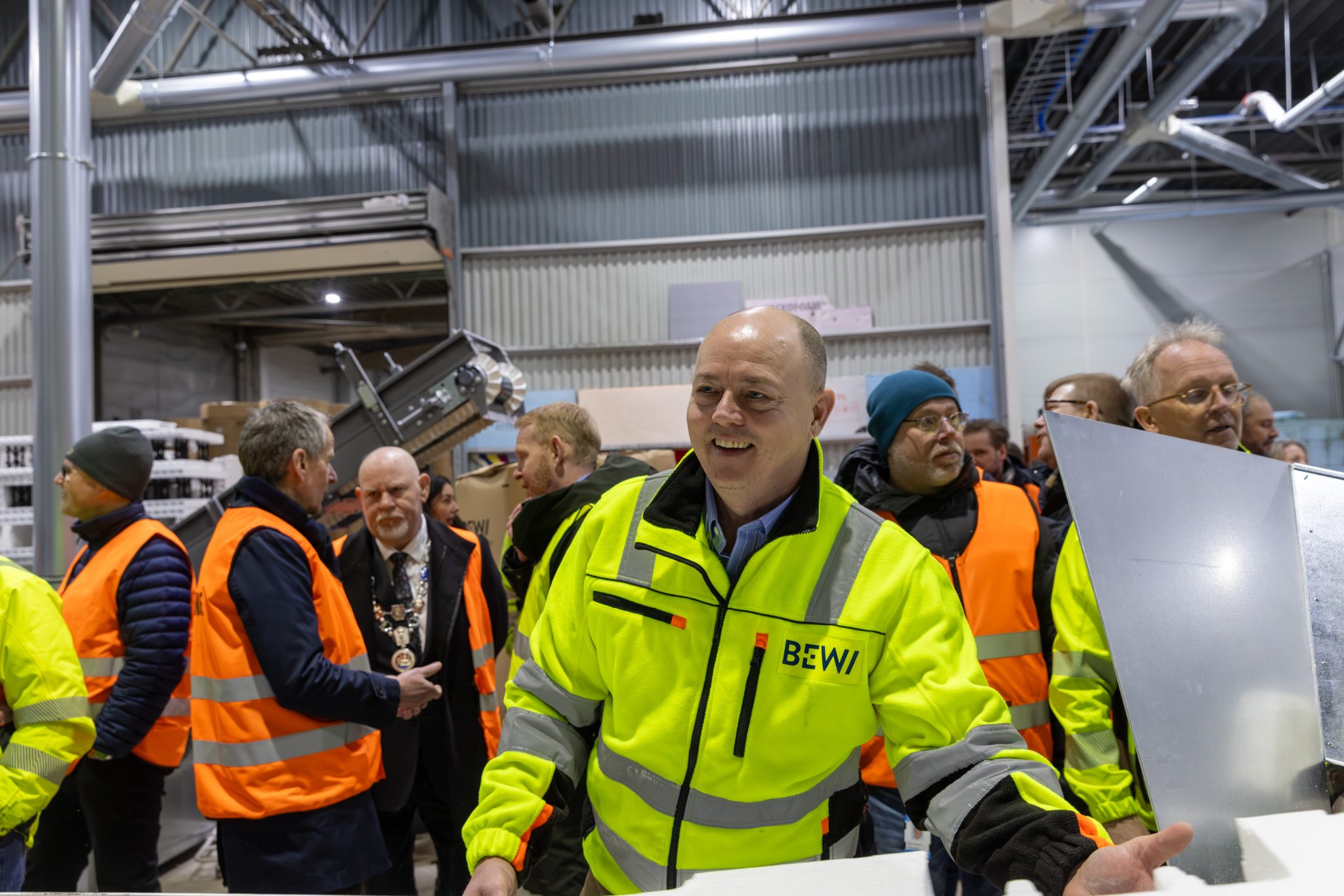 Onsdag 4. februar markerte BEWI en viktig milepæl i utviklingen av sirkulære løsninger i norsk bygg‑ og avfallsbransje. Nærmere 50 gjester – fra avfallsaktører og byggevarebransjen til organisasjoner som Grønt Punkt, Handelens Miljøfond, SINTEF og Byggevareindustriens Forening – var samlet da dørene offisielt ble åpnet til BEWIs nye gjenvinningsanlegg på Gressvik i Fredrikstad.